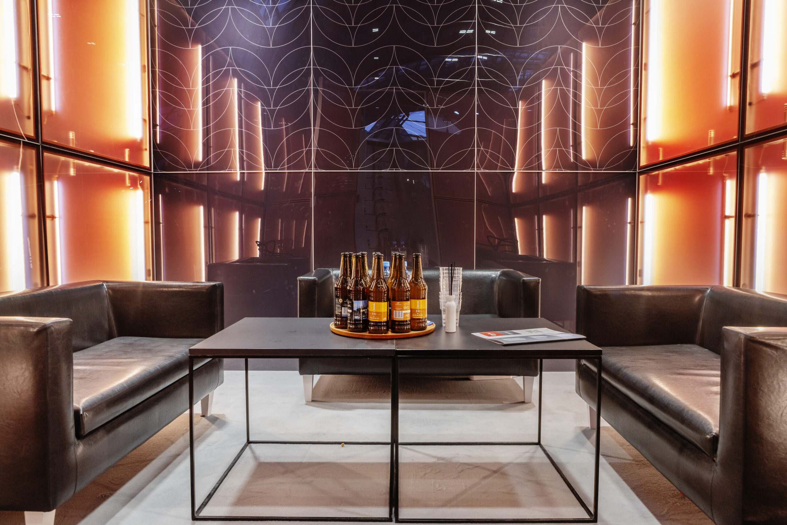 Zabudowa targowa dla marki Corab została zaprojektowana jako nowoczesne, wielofunkcyjne centrum relacji. Sercem stoiska stała się konstrukcja o powierzchni 9 m2, wyposażona w transparentne panele oraz zintegrowane oświetlenie liniowe. Pełniąc funkcję wizualnej „latarni”, przyciągała wzrok z każdego punktu hali, a jednocześnie dyskretnie wydzielała strefę spotkań. Ten zabieg pozwolił na idealny balans między biznesowym profesjonalizmem a efektem wow. W rezultacie powstało tętniące życiem stoisko, które odważnym designem i dopracowaną funkcjonalnością zdominowało aleję targową, podkreślając otwartość oraz charakter marki.